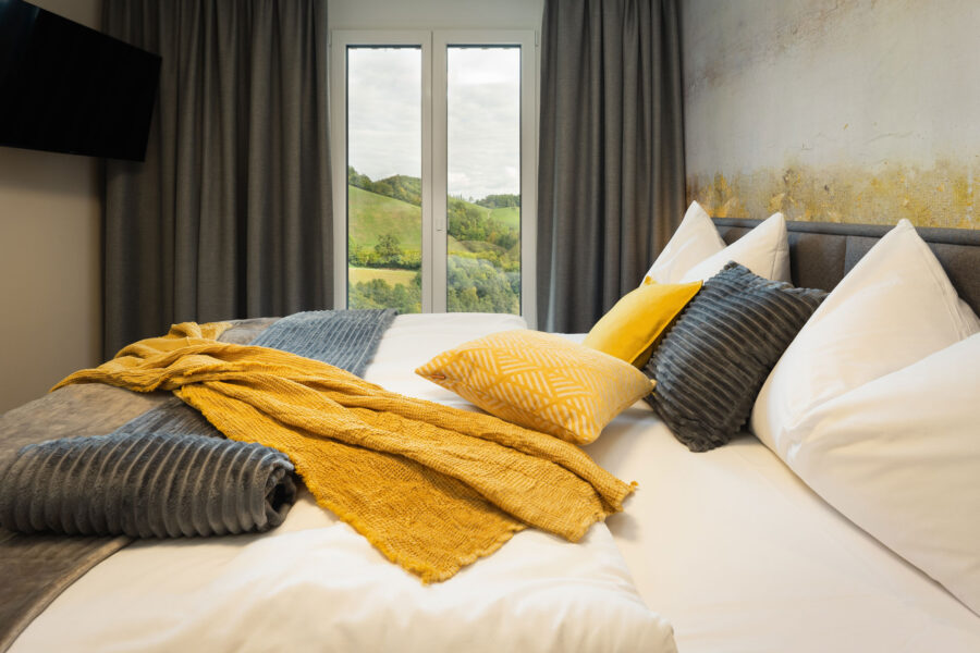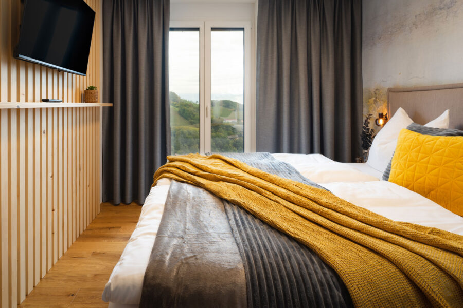 Inmitten der malerischen Weinberge rund um Kitzeck thront das Weinkitz in traumhafter Aussichtslage. Einst das Landgasthaus ‚Sulmtaler Stub’n‘, erstrahlt es nach umfassender Sanierung 2021 in neuem Glanz. Die Renovierung legte besonderen Fokus auf Naturmaterialien wie geölte Holzböden und Naturstein in den Bädern, um eine gemütliche Atmosphäre zu schaffen.