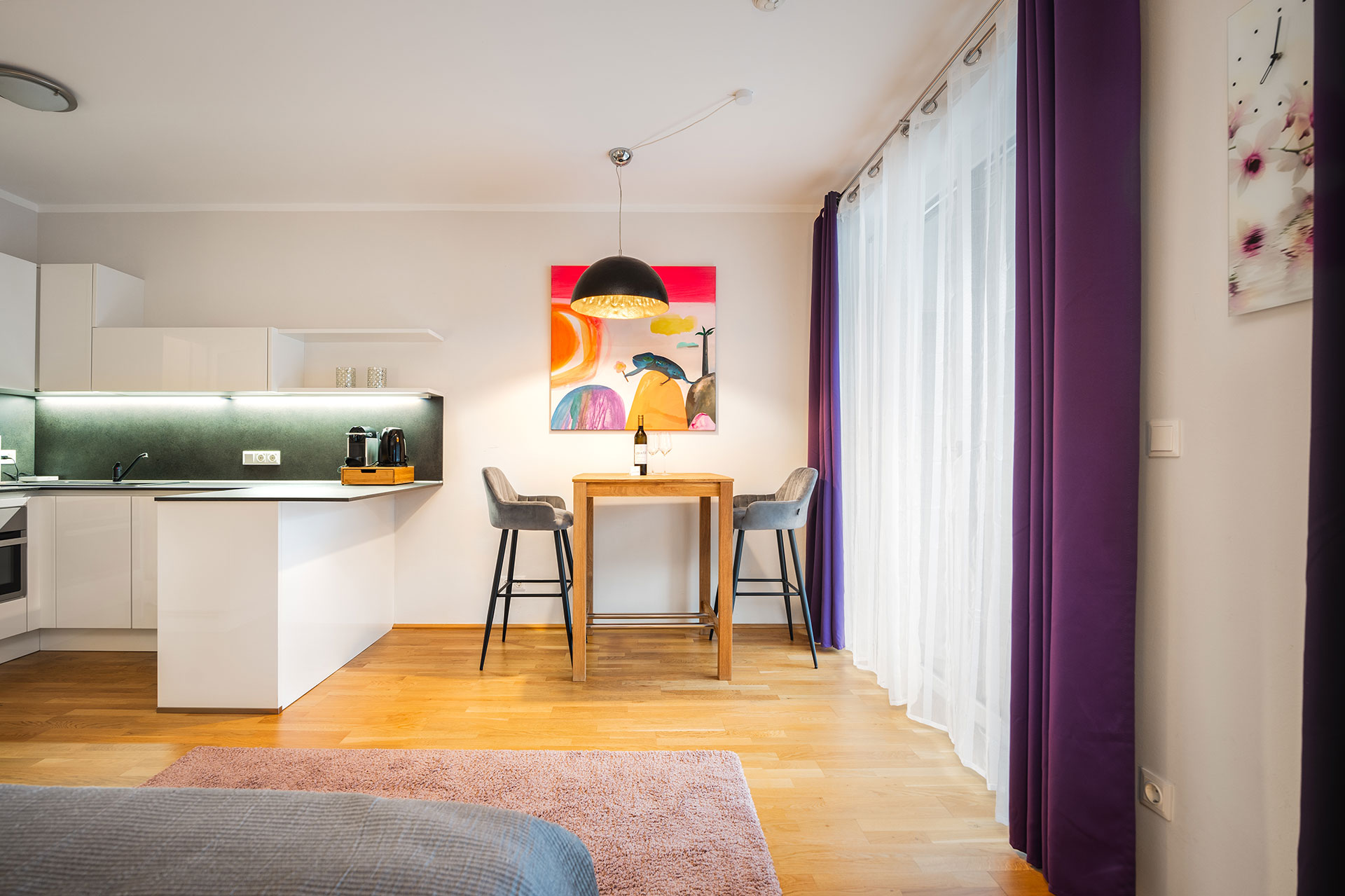 Lassen Sie sich von der detailverliebten Einrichtung der Garçonnière über den Dächern von Graz verzaubern. Der Terrassenbalkon ermöglicht eine fantastische Aussicht auf die monumentale Burg Graz-Gösting. Das Apartment Anna eignet sich für alle, die Wert auf das Wesentliche legen und sich dem Moment hingeben.