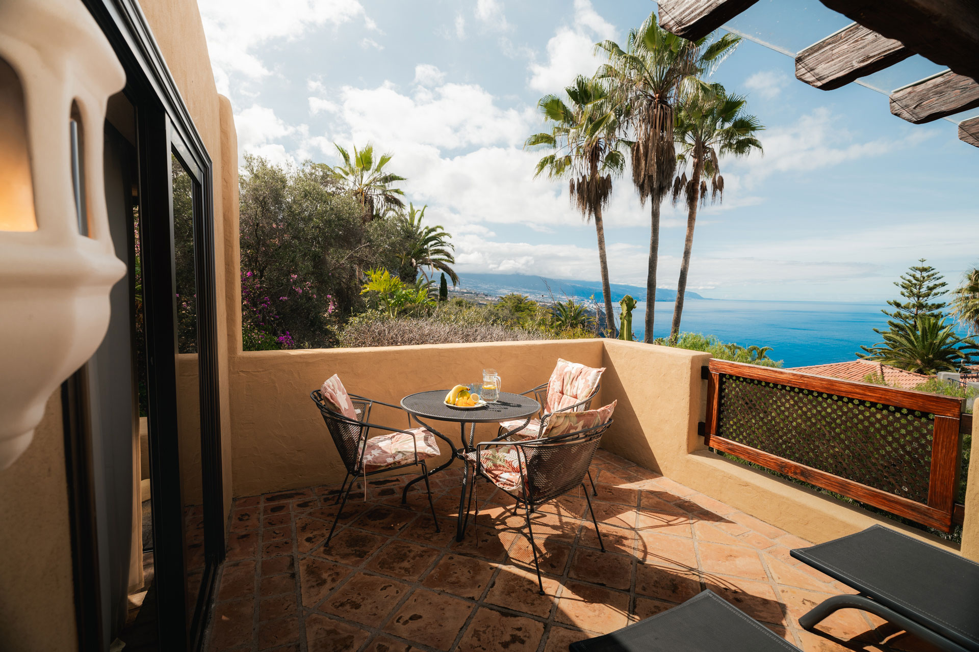 Das „Don Carlos“ liegt eingebettet im ersten Stock des Haupthauses „El Refugio“. Der bezaubernde kanarische Balkon welcher nach Süd/Westen ausgerichtet ist, bietet dem Gast einen fantastischen Blick auf den Atlantik, den Teide und die gesamte Nordküste der Insel.