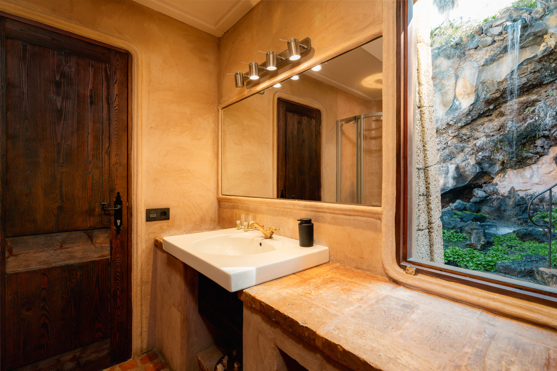 Die eigene Weinbodega mit Grillplatz und einem gemauerten Ofen bietet Platz für 10 Personen. Direkt nebenan befinden sich sozusagen im „Weinkeller“ ein kleines Bad mit Badewanne/WC im ganz rustikalem Stil.