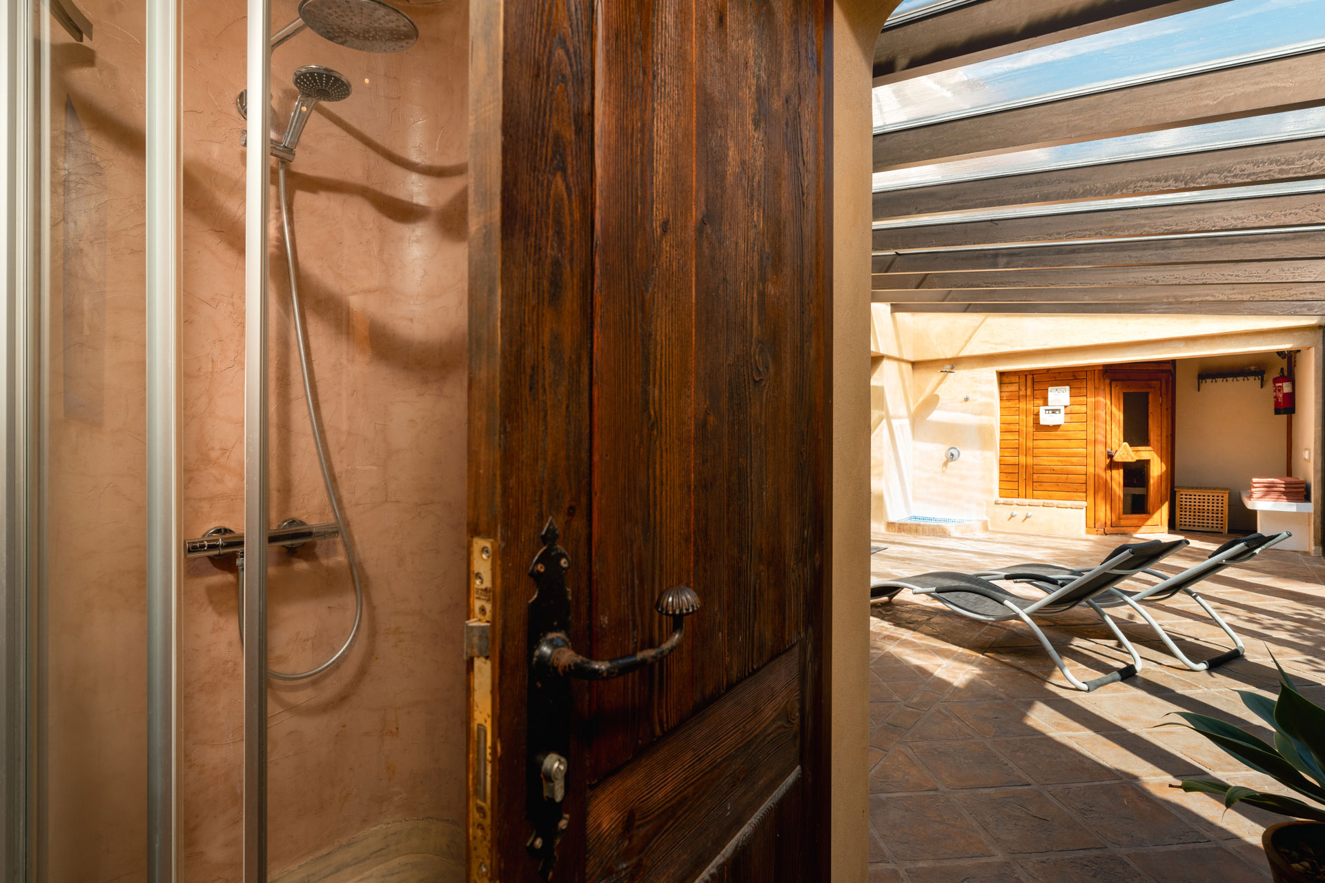 Auf der weitläufigen Terrasse können Sie die Seele baumeln lassen – Sonne tanken oder auch ein Glas Wein trinken und den Blick auf das Meer und den Teide genießen. Von der Terrasse führt eine private Aussentreppe hinunter in den Wellnessbereich mit Sauna und Hallenbad.