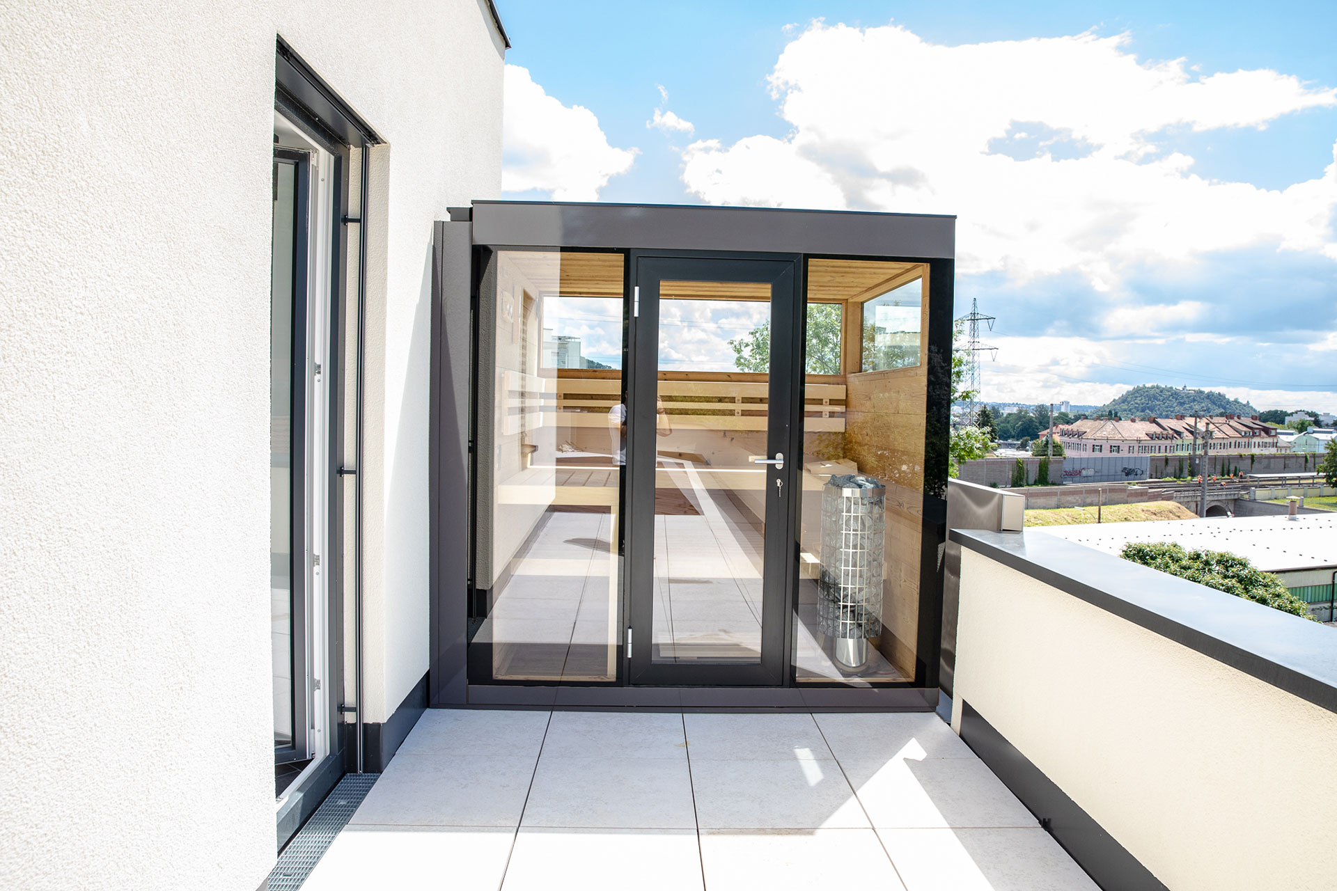 Die Penthouse Suite Alexandra sorgt mit ihren 72 m², ihrem Whirlpool auf der Terrasse und der Außensauna für einen fantastischen Aufenthalt. Der Rundumblick auf den berühmten Grazer Schlossberg und auf das Naherholungsgebiet Plabutsch, runden dieses fantastische Ambiente ab.