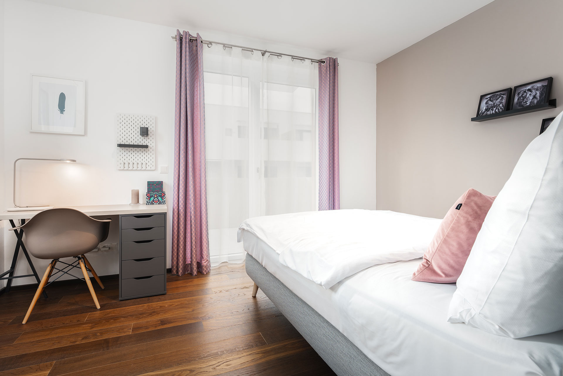 Dieses Appartement verfügt über ein großes gemütliches Wohn-/Esszimmer, mit einem grossen Esstisch und einem Komfortsofa welches sich auch schnell als Schlafsofa umbauen lässt, so dass bis zu 3 Personen in dem Appartment Platz finden. Ein SAT-Fernseher, welcher es ermöglicht ASTRA-Kanäle zu empfangen und zu schauen, ein Radio und WLAN sind ebenfalls vorhanden. Das Schlafzimmer mit Doppelbett verfügt über ein Swiss-Flex Gesundheitsschlafsystem.