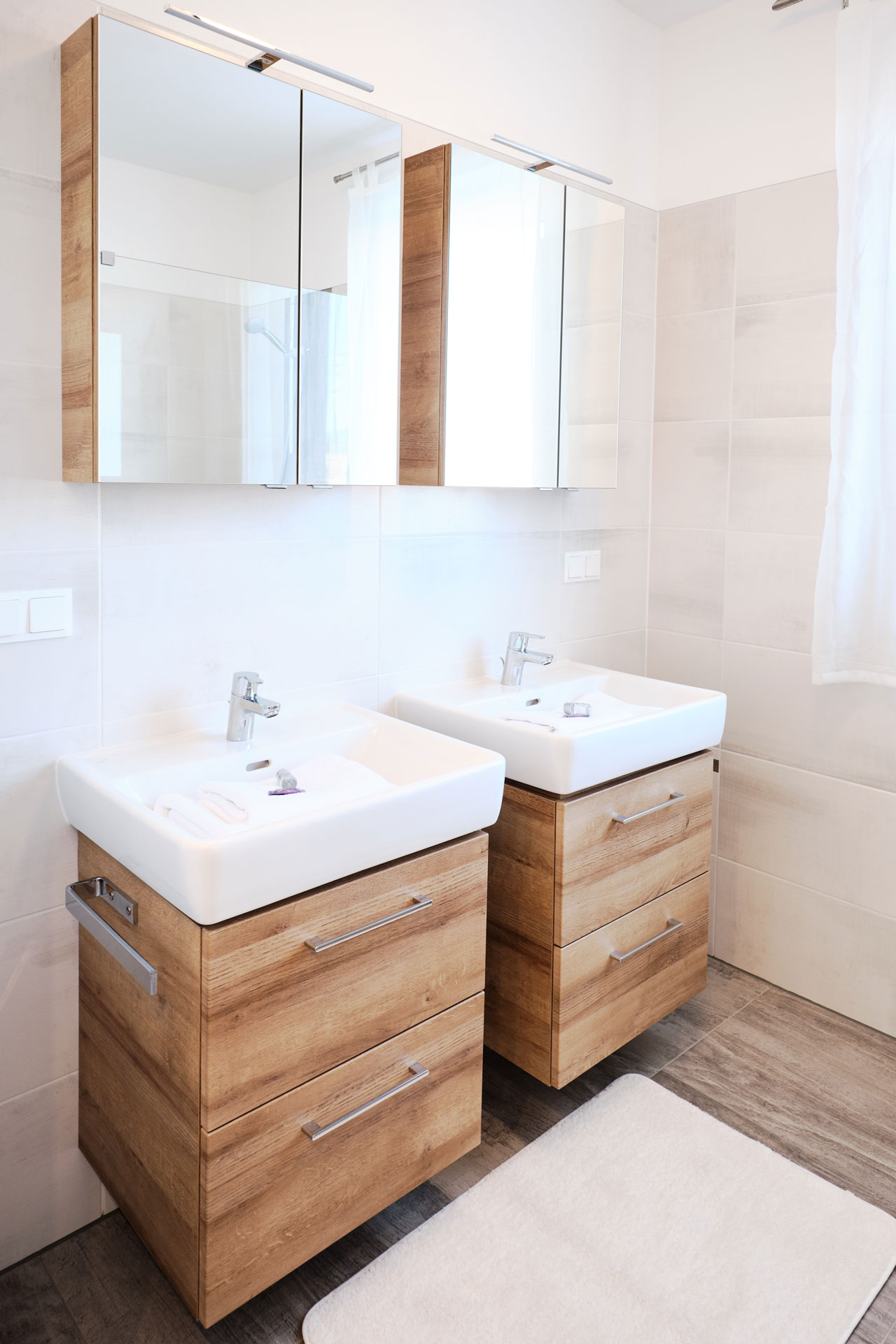 Die beiden Hauptschlafzimmer sind geschmackvoll und mit Qualitätsbetten (180x200cm) des Schlafsystems “Swiss Flex” ausgestattet, ebenso das Kinder-Jugendzimmer, welches über ein Stockbett verfügt und an eines der Hauptschlafzimmer angrenzt. Die Villa bietet zwei Badezimmer und verfügt einmal über eine begehbare Dusche und im Zweiten Bad über eine Dusch-Badewanne.